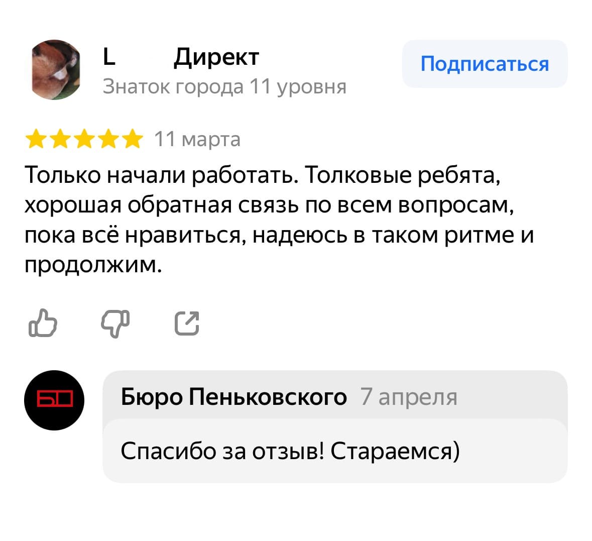 Ребята, благодарим вас за такой сервис и всем рекомендуем Бюро Пеньковского!