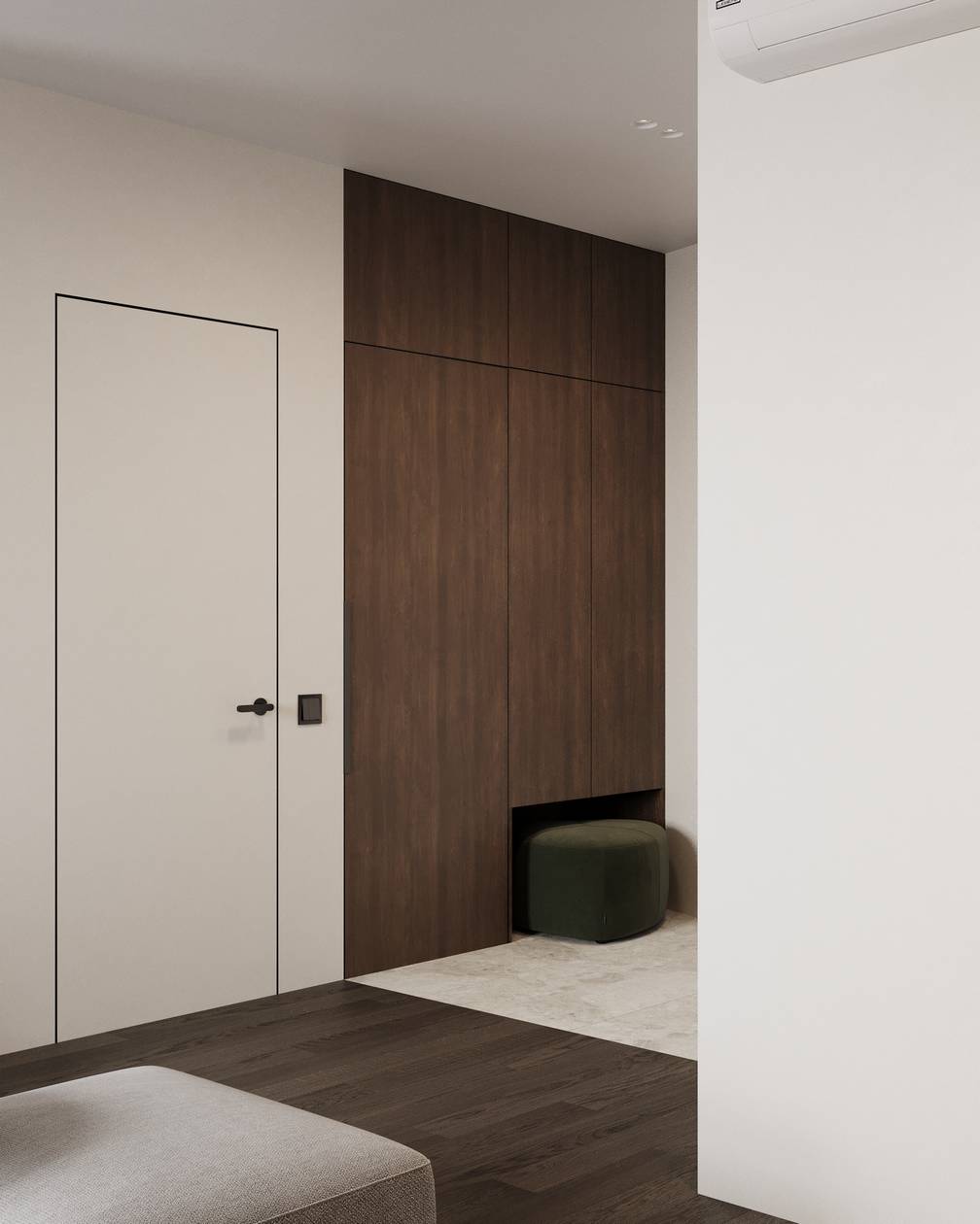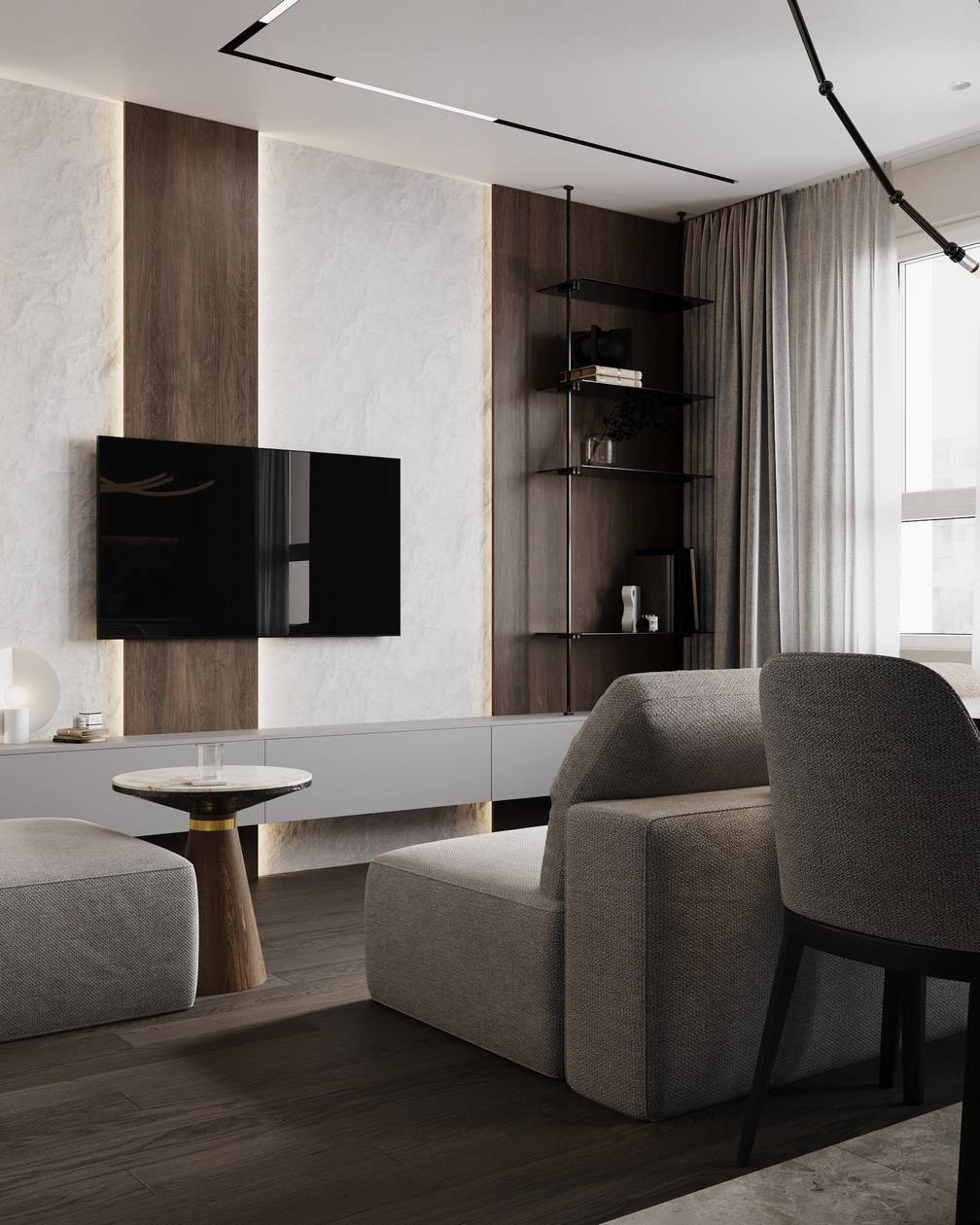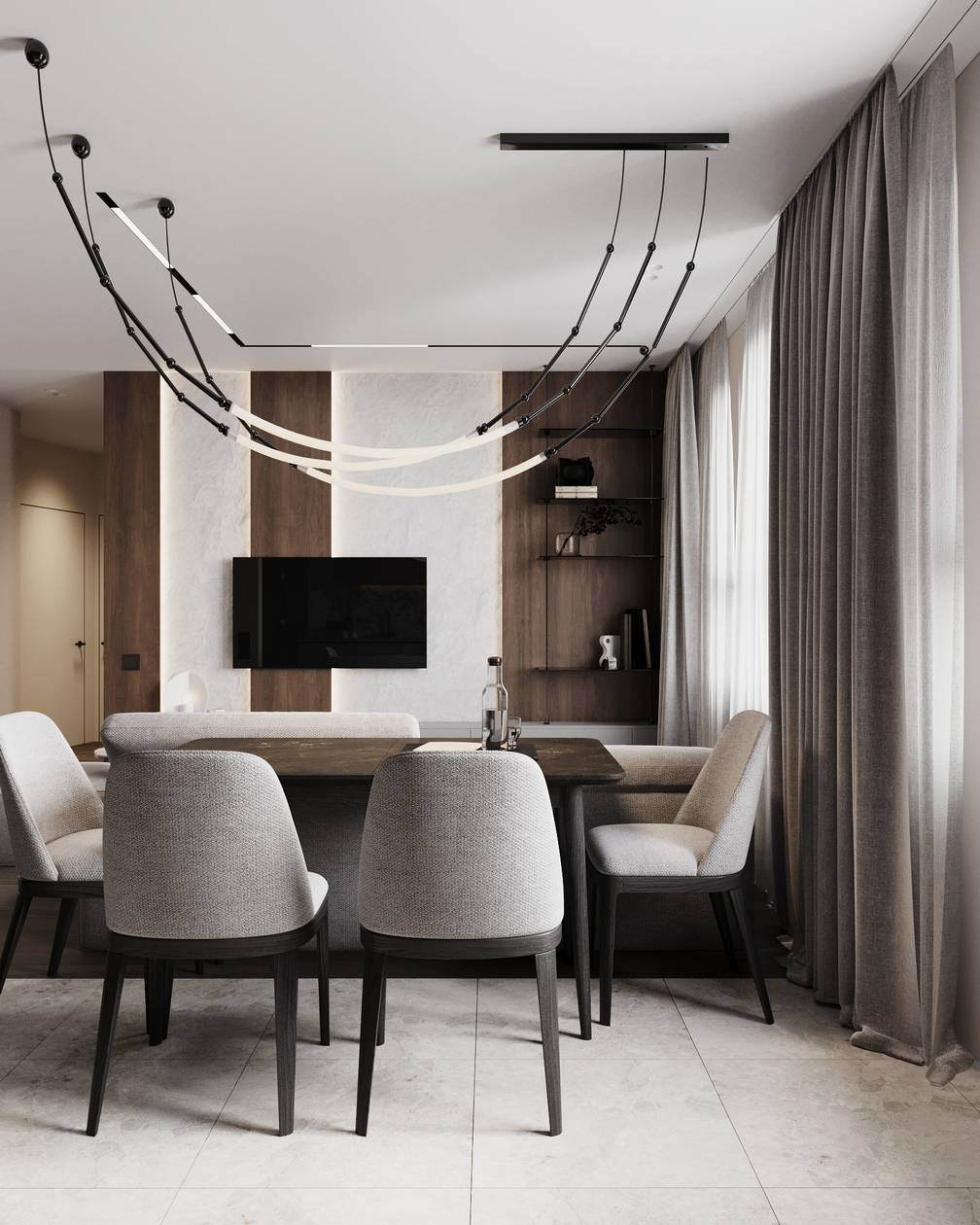- Подготовка чертежей и авторский надзор по реализации дизайна интерьера квартиры в новостройке.